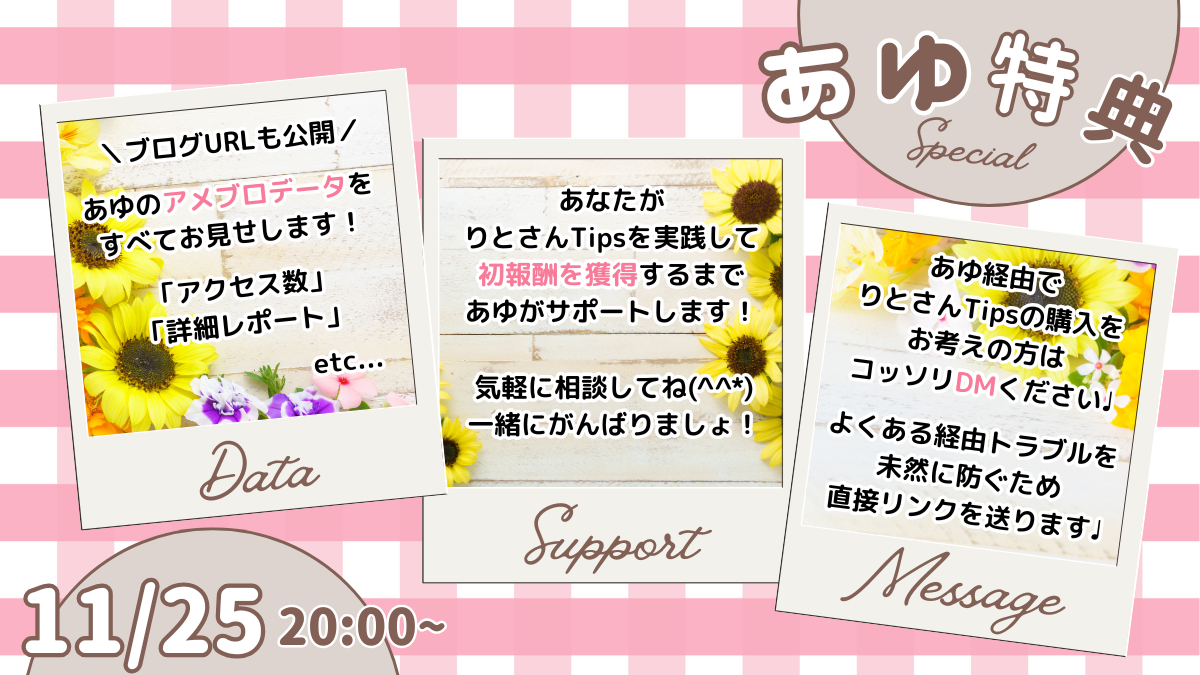 わたしから教材を購入してくださった方には、たった2日(2記事)で収益化した実践中のアメブロをお見せしています。
