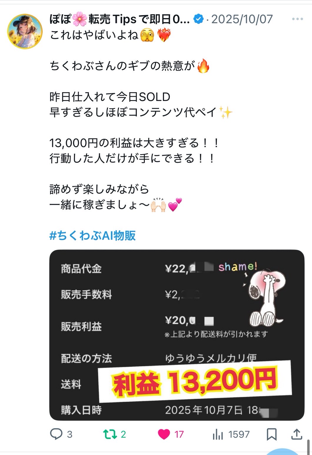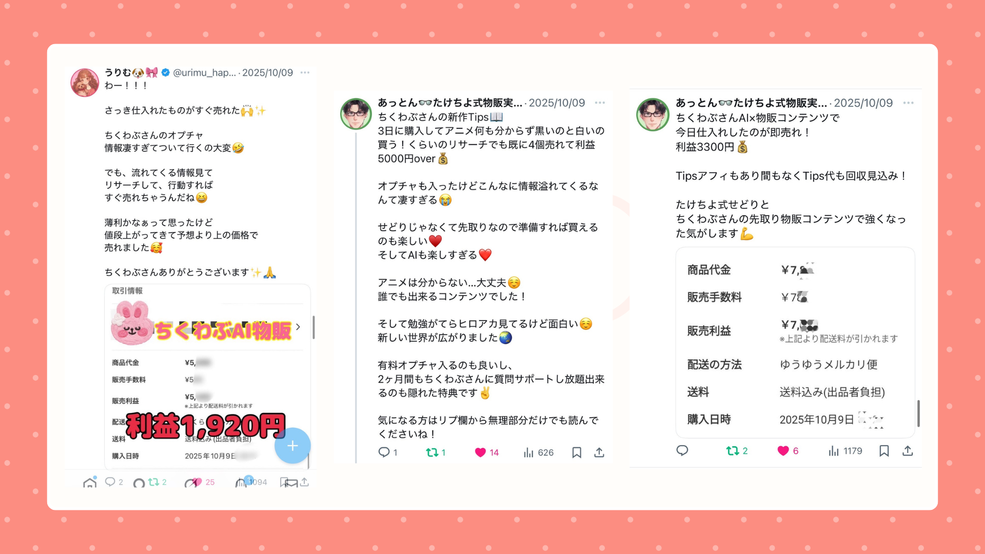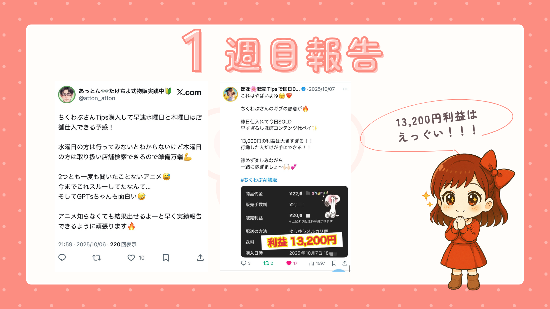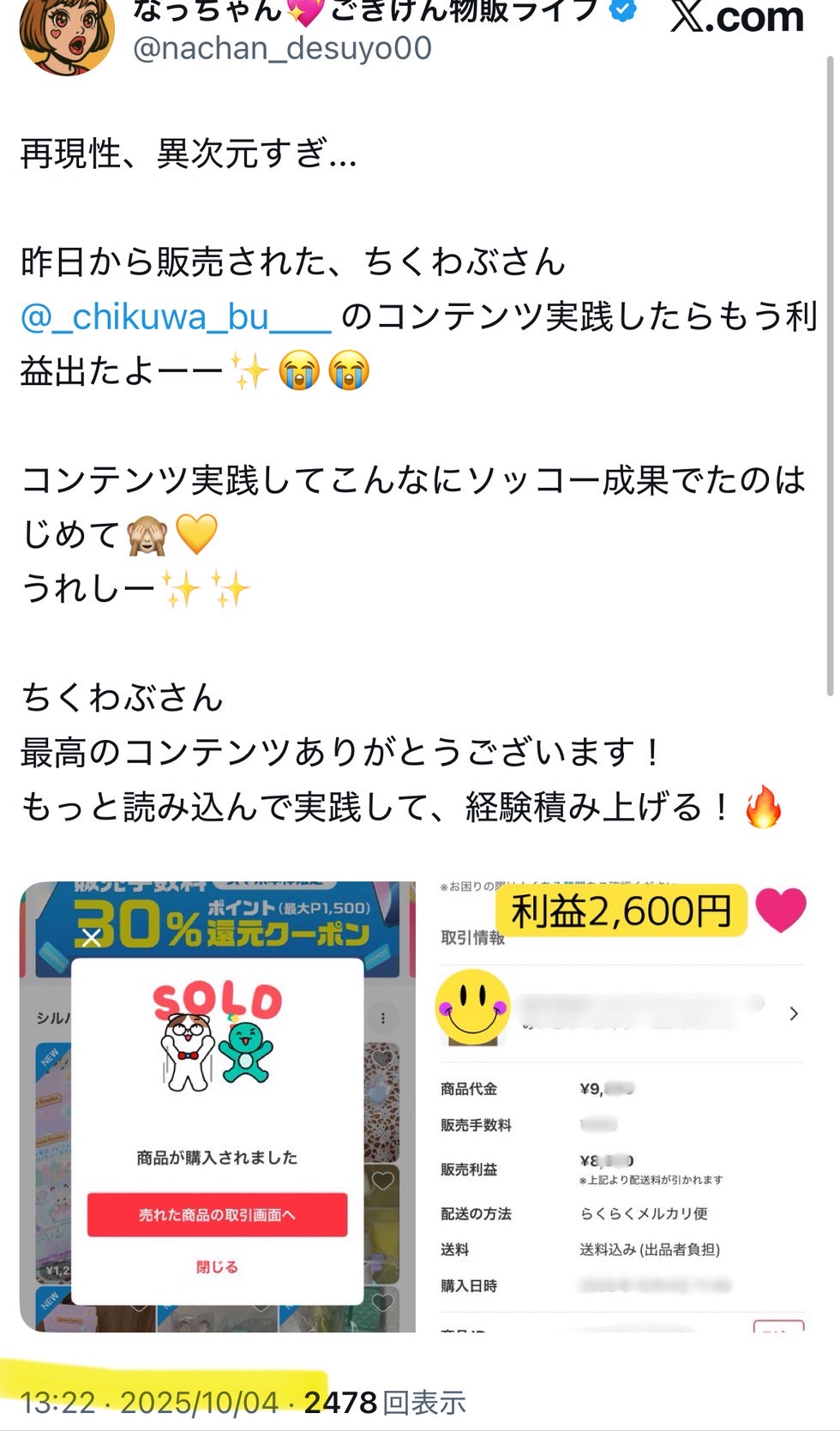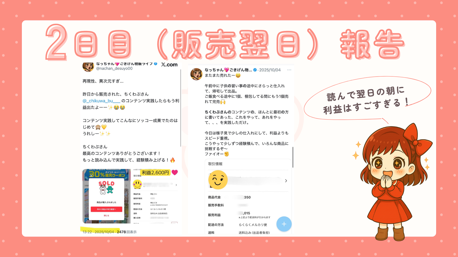 - なかなか仕入れまで進めなかった方が、2日で6,000円利益!