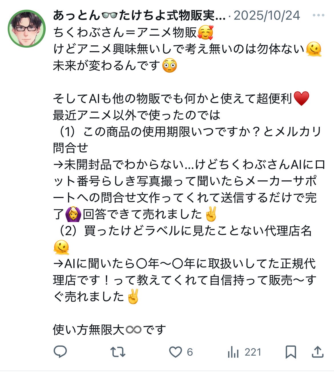正しいリサーチ方法を身につけて面倒臭いことはAIに丸投げしアニメ物販に取り組んだから。