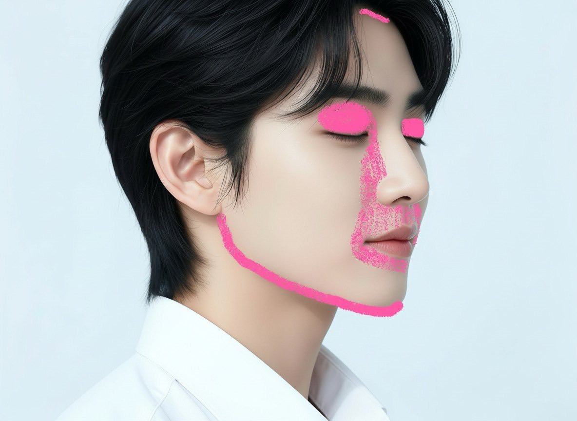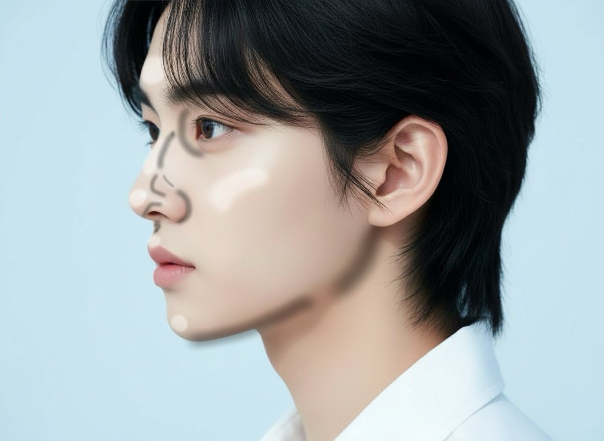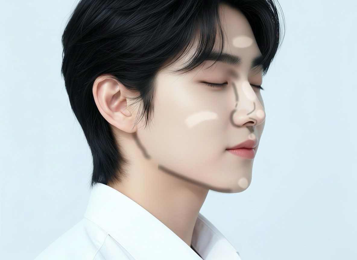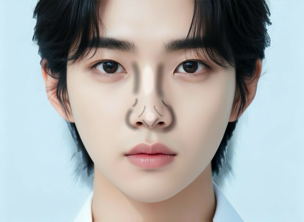 鼻筋をシャープかつ高く見せ鼻先を出し小鼻を削る