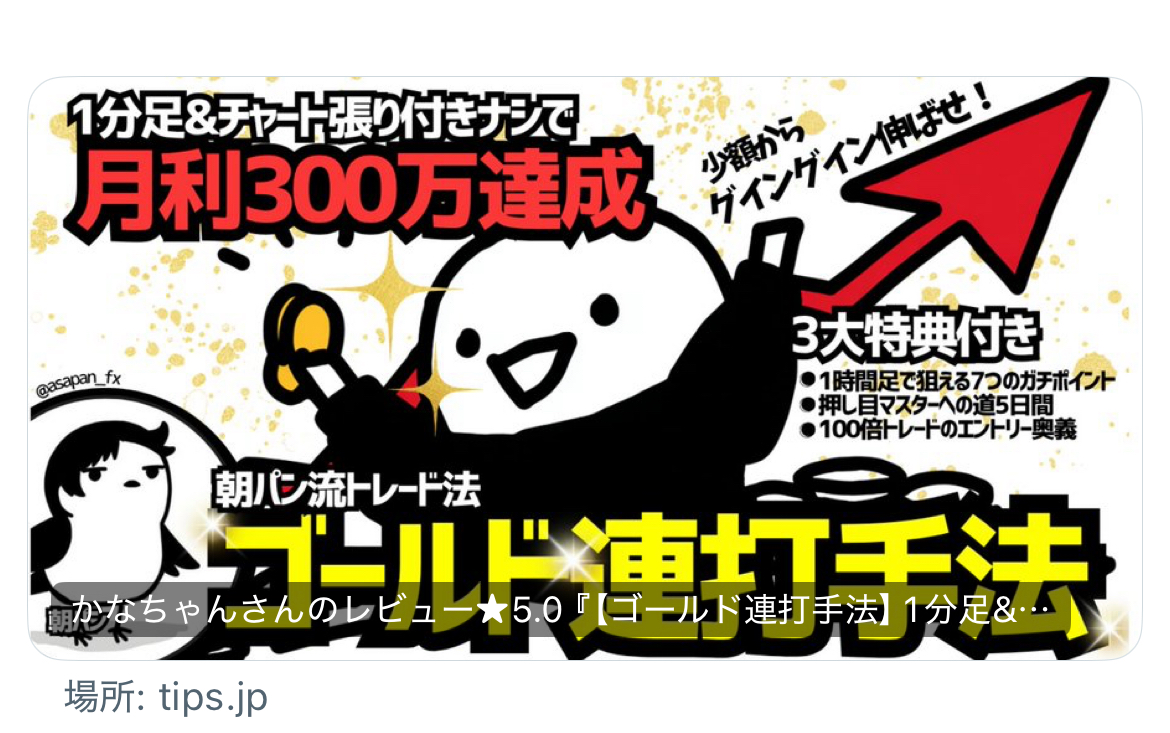 私のリンク経由で朝パンさんの「ゴールド連打手法」を手に取ってくださった方へ、感謝を込めて**【限定特典】**をお渡しします!XのDMで受け取ってくださいね💌