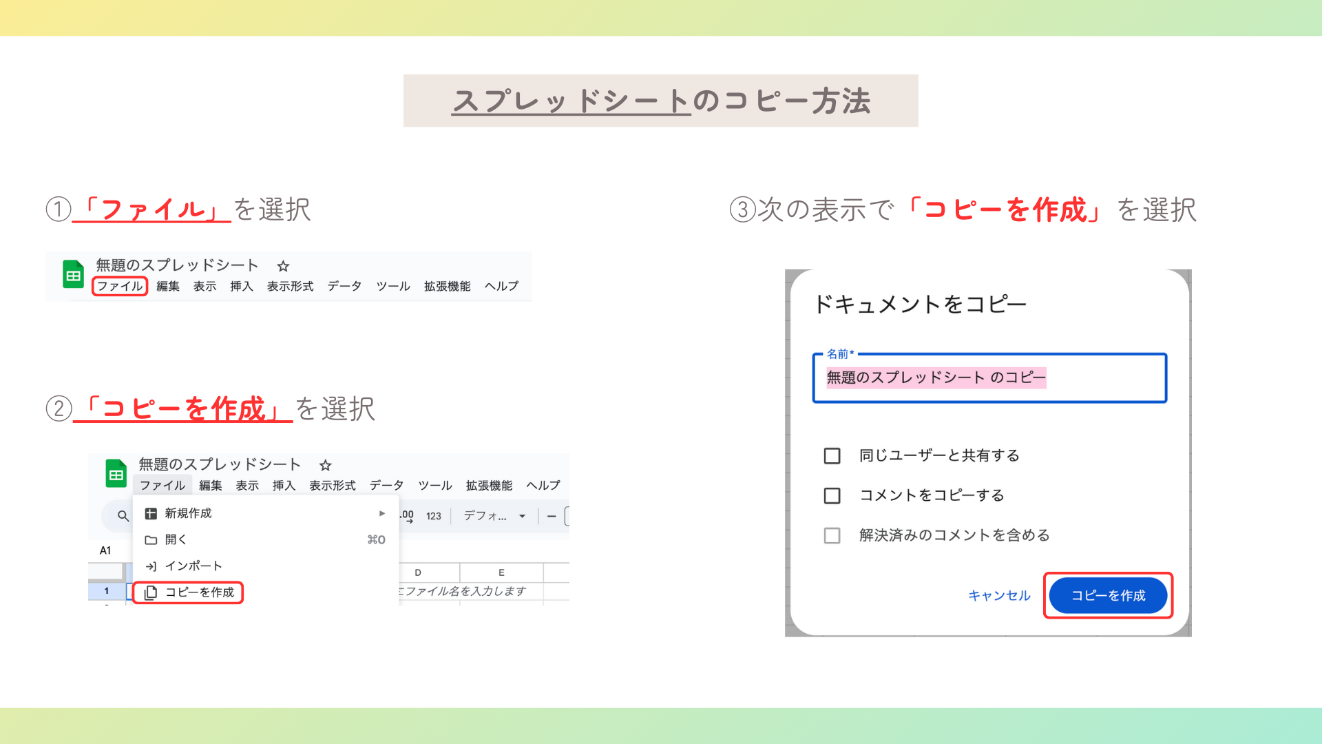 全て原本のURLを載せていますのでご自身のドライブ内にコピーしてご活用ください。