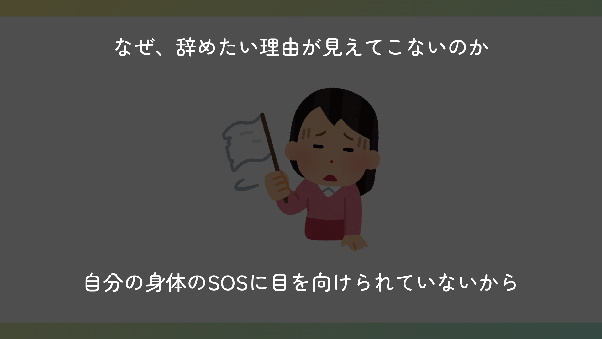 このままじゃ気付かぬうちに本当に身体が壊れてしまう-そう思った瞬間「辞めなきゃ」と、ようやく本気で思えたのです。