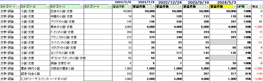 ◆各カテゴリーにどれくらいの冊数が登録されているか