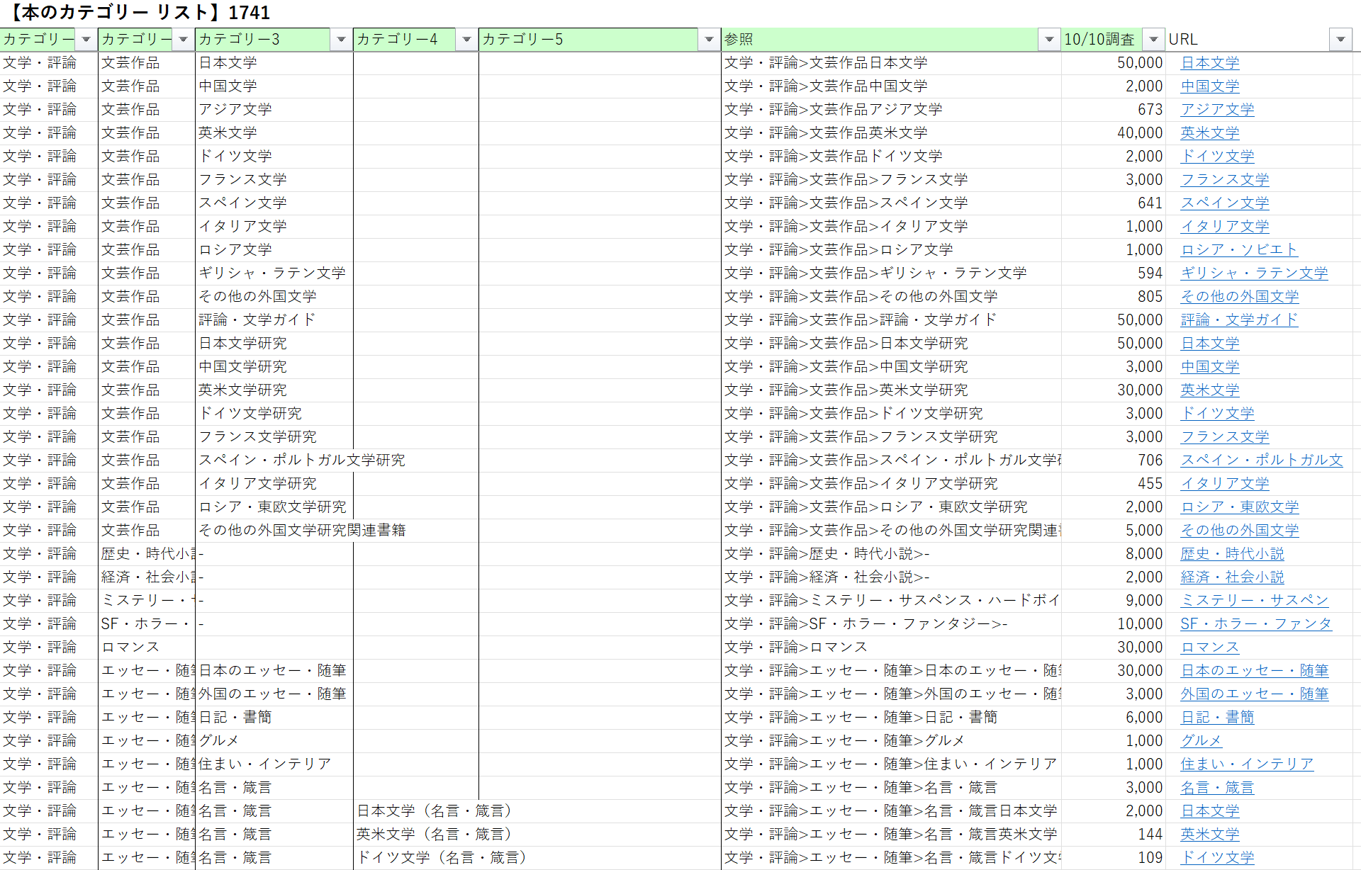 - 5、本のカテゴリーリスト 1700個(2024/10/10時点 登録冊数掲載・EXCEL)