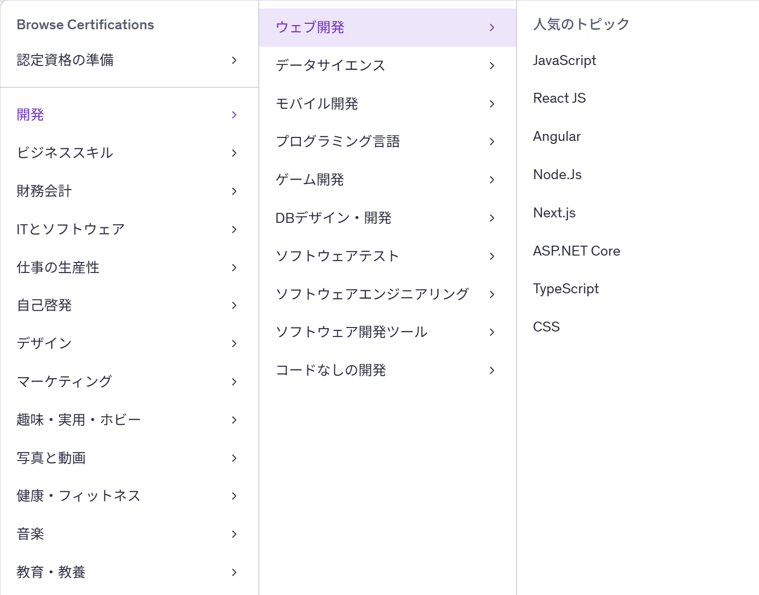 そして、その画面を進めていくと下記のようなカテゴリー・コースの検索画面になります。