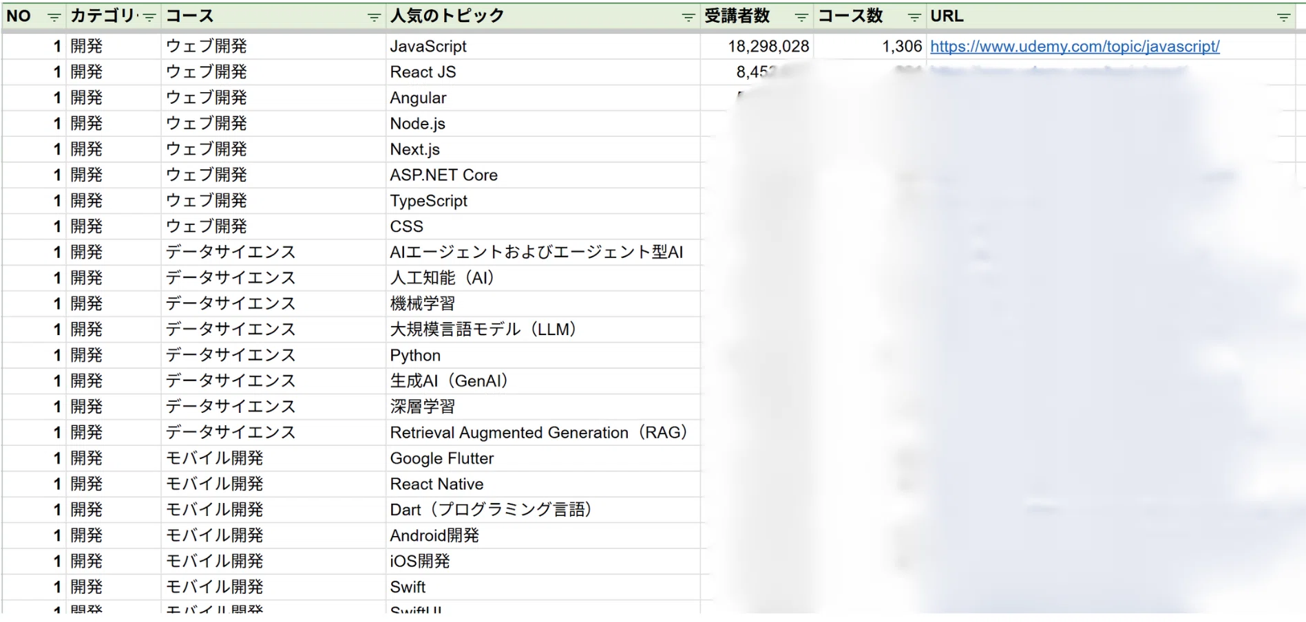 2、クリック一発でリサーチ完了→URLをクリックすれば即Udemyのトピックページに飛べます。あなたの知らなかった分野の講座も見つかるかも?