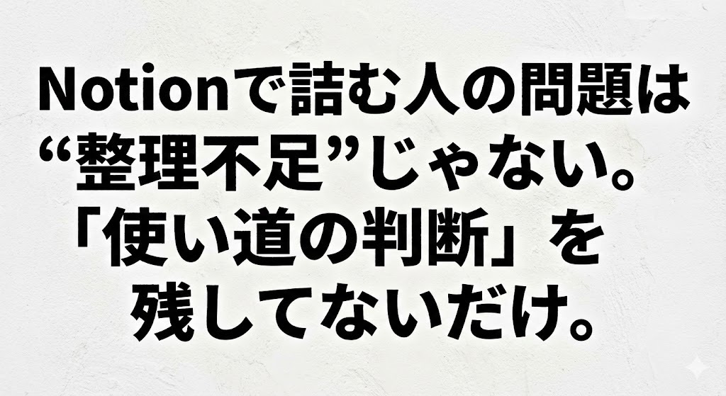 この話は、Notionが悪い話じゃありません。「情報を使える形に変える思考」の話です。