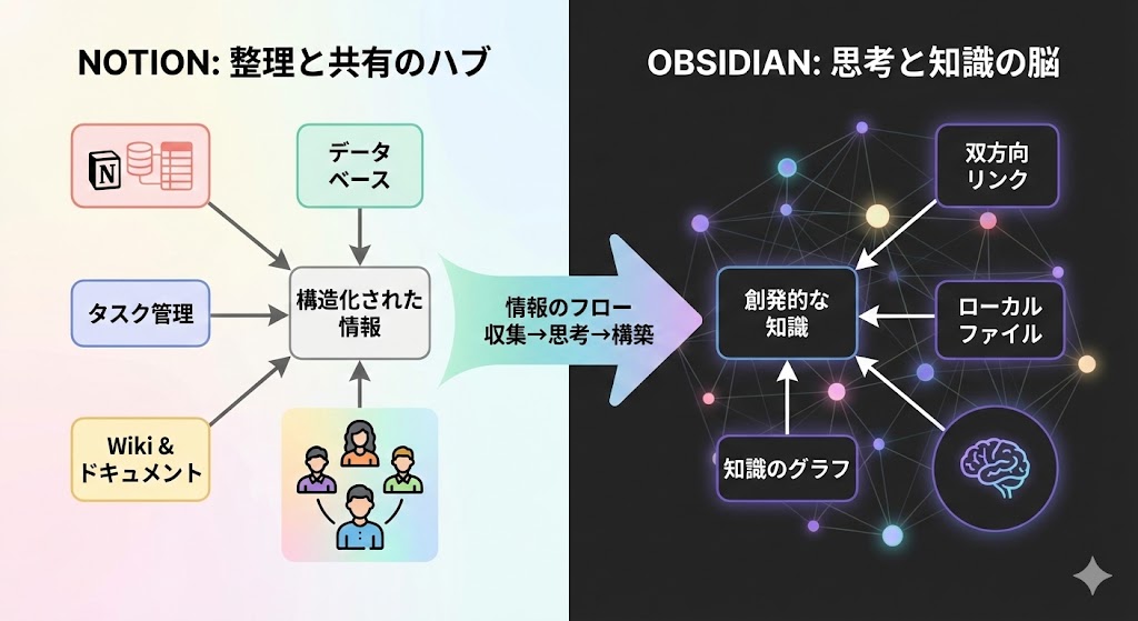 この記事で一番伝えたかったのは、「Notionが悪い」とか「Obsidianがすごい」という話ではありません。