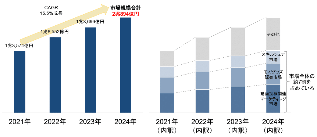 ◆ 動画・クリエイター市場はすでに2兆円超えに成長中、毎年15%の勢いで拡大を続けている