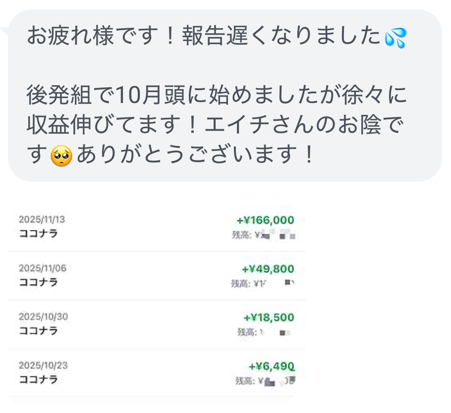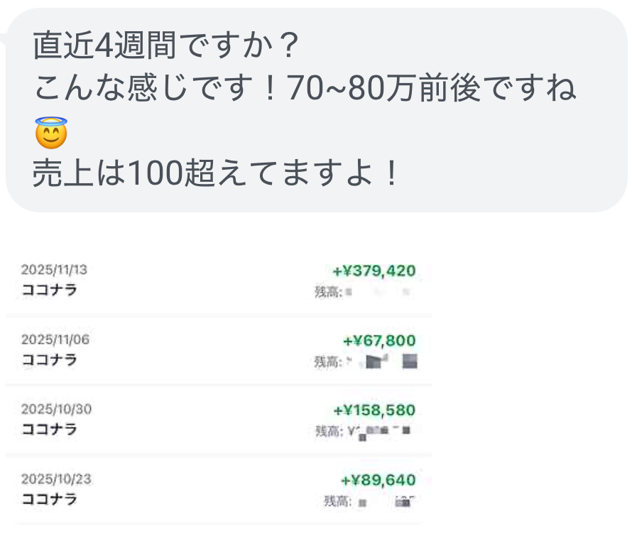 そして、noteと違いココナラはまだまだブルーオーシャンで参入者がいません。その証拠に先月モニター生から4名100万超の生徒がでました。