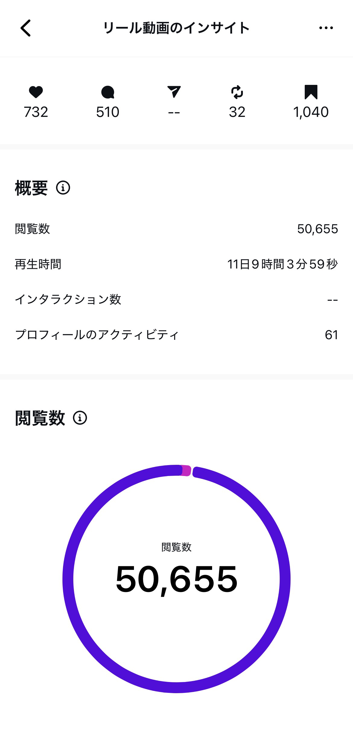 通常、フォロワーを500人増やすだけでも数ヶ月かかると言われる中でたったリール1本でフォロワー500人以上獲得できました。