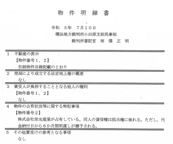 その重要な権利をまとめたものが物件明細書というわけです。