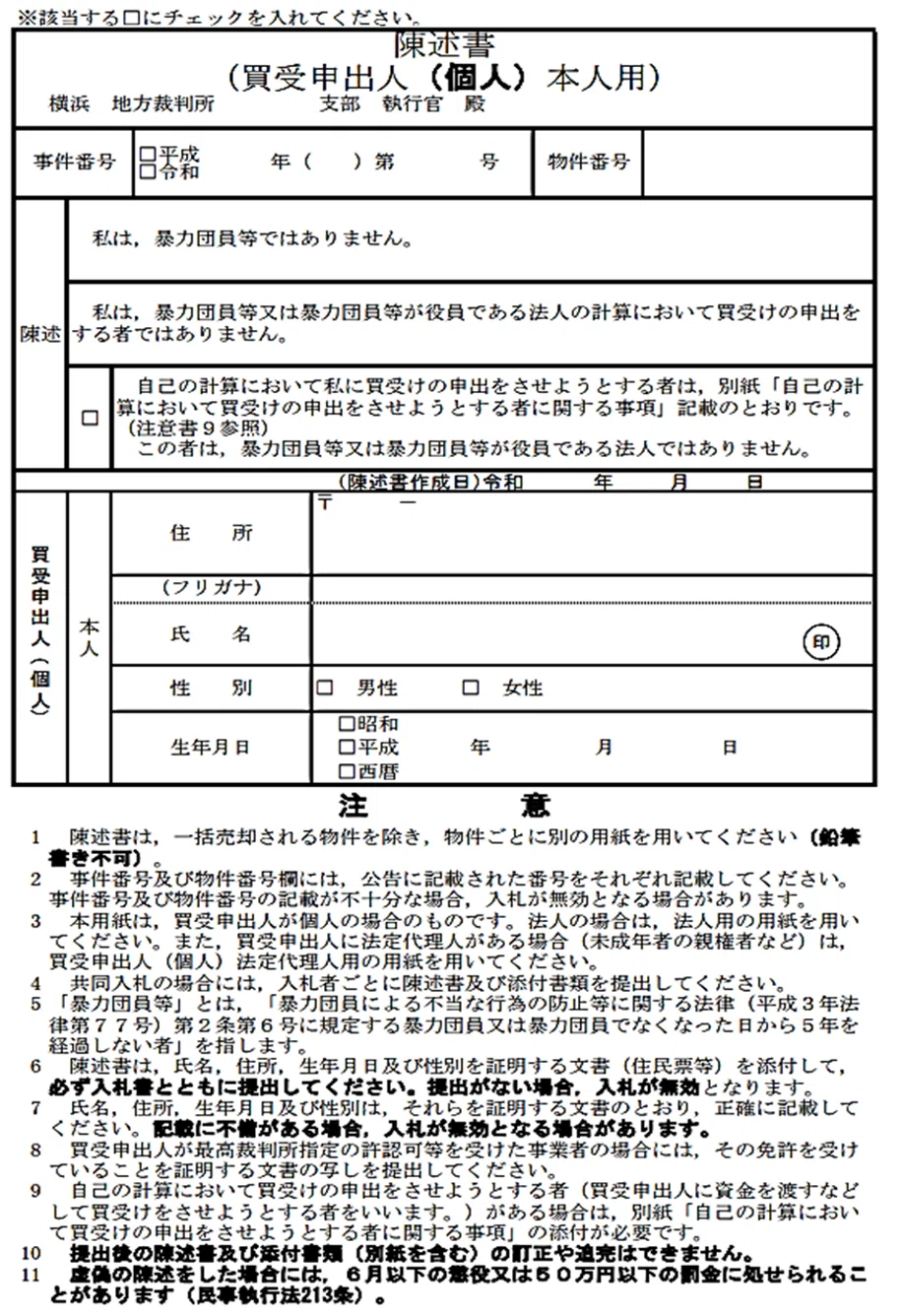 これらの提出書類は裁判所から取り寄せることになりますが、取り寄せの際には個人で入札するか、法人で入札するかをきちんと伝えるようにしましょう。