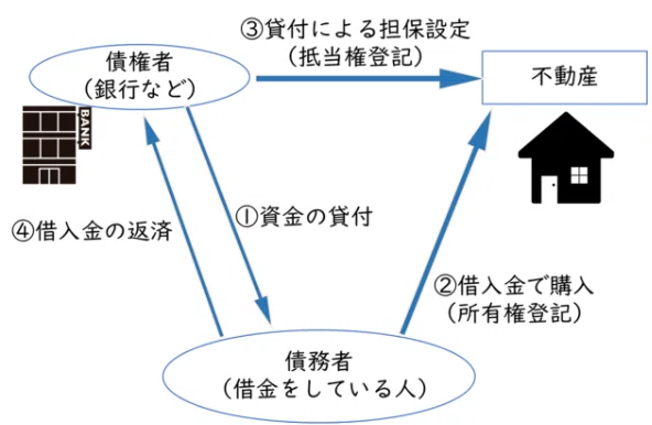 この場合、住宅ローンを借りた人(物件所有者)が債務者、住宅ローンを貸した銀行が債権者です。