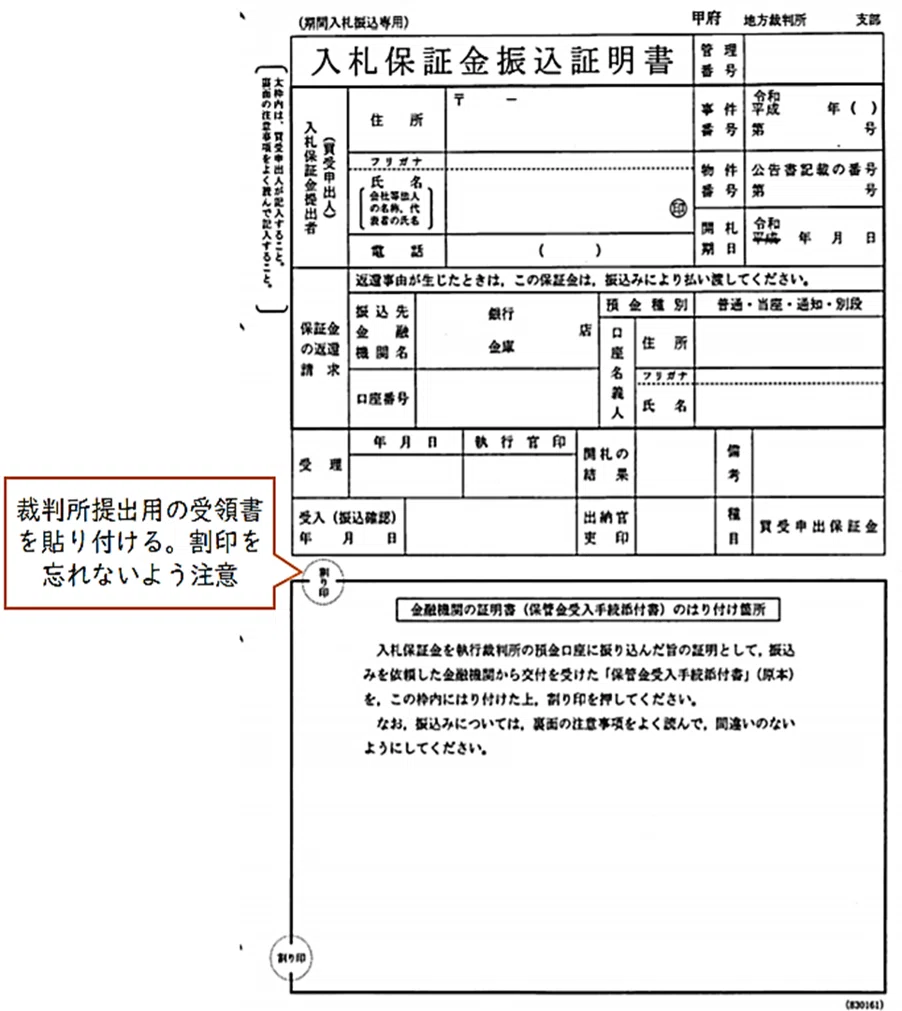 入札に先立ち、保証金を裁判所に振込む必要があります。