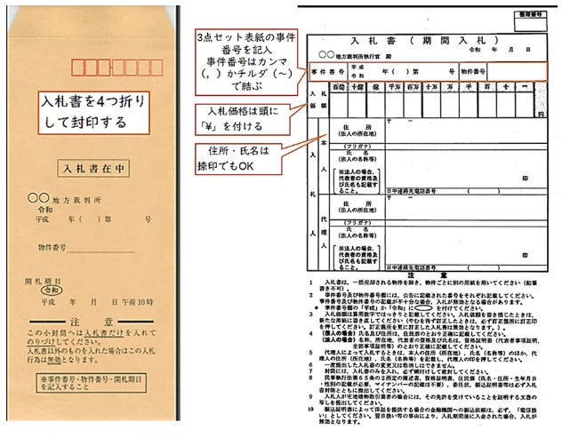 こちらが郵送を希望しても、封筒と希望冊数の郵送、裁判所の準備と返送、到着、と3日以上はかかりますので、入札期間に入ってから慌てないよう、あらかじめ準備をしておきましょう。