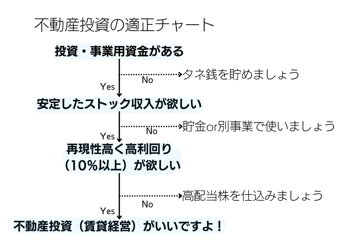 では、他にもストック収入を生むものはあるのに、なぜ不動産賃貸経営なのでしょうか?それは、再現性・利回りが比較的高いからです。