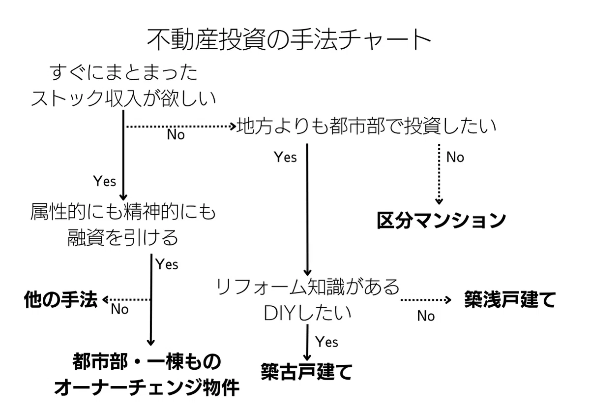 この記事では、不動産投資をやるべきか、どのような手法で始めるかについて、チャートを紹介しながら解説しました。