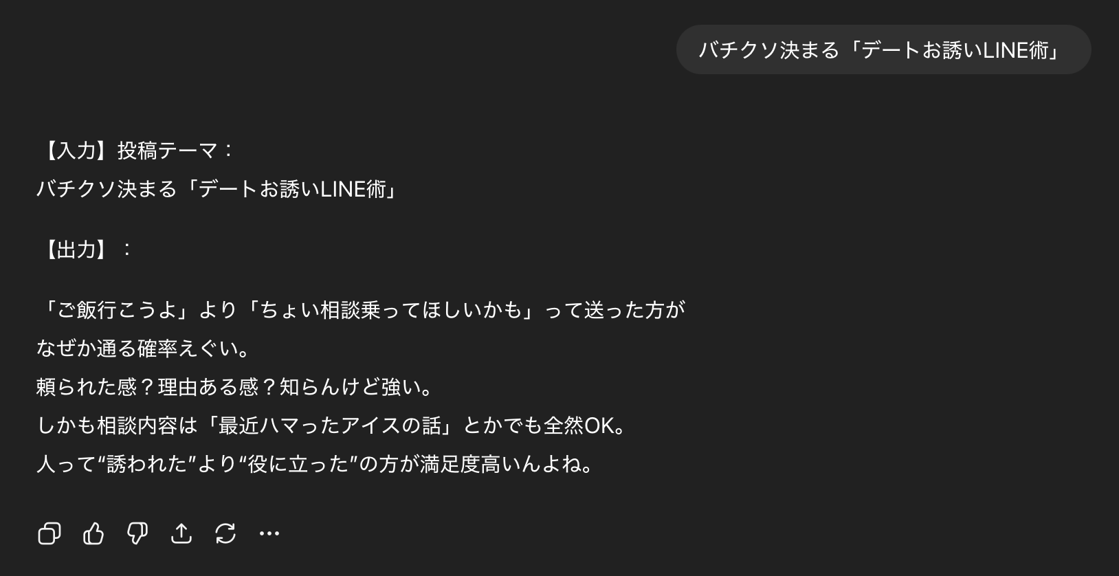 しかも、そのプロンプトで実際に作った投稿は一つの載せてないのに!?