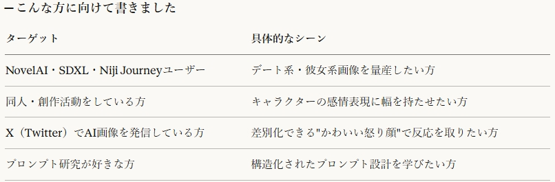 こんな方に刺さります AI画像生成で「怒り・すね彼女」を作りたいのに、毎回表情がブレる・視線が外れる・同じ画像になる……そんな悩みを抱えている方。