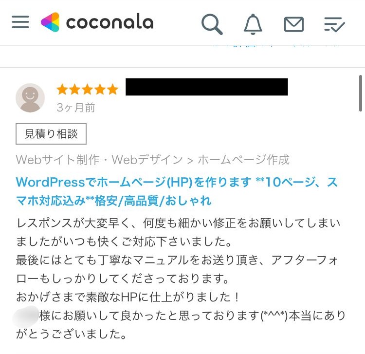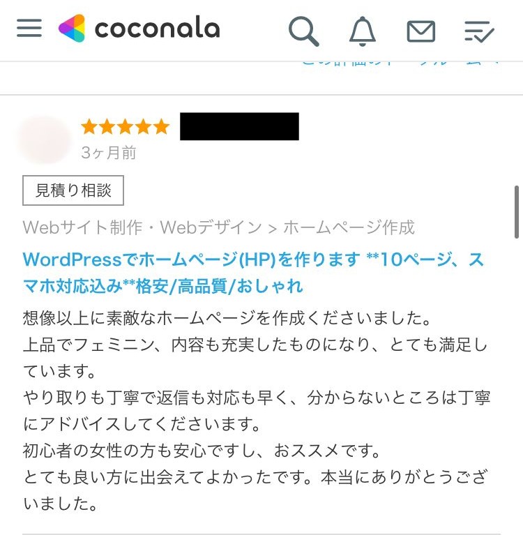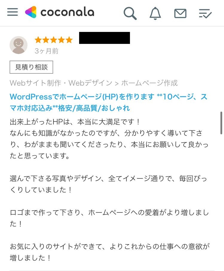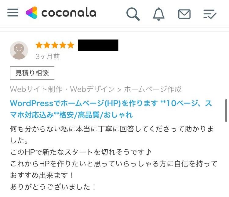 私は今、フルタイムの会社員として働きながら、WordPressを使ったホームページ制作でココナラでプラチナランクを取得し、おかげさまで営業なしでも満員御礼になることができました。