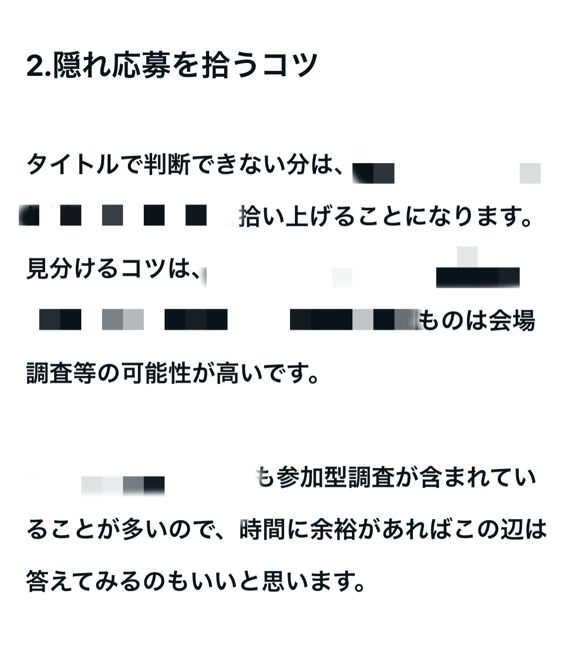 がむしゃらに丸2ヶ月毎日50〜100件のアンケートに応募し、そのうち参加型調査に一日10〜15件は応募に進めてきた私だからこそ。