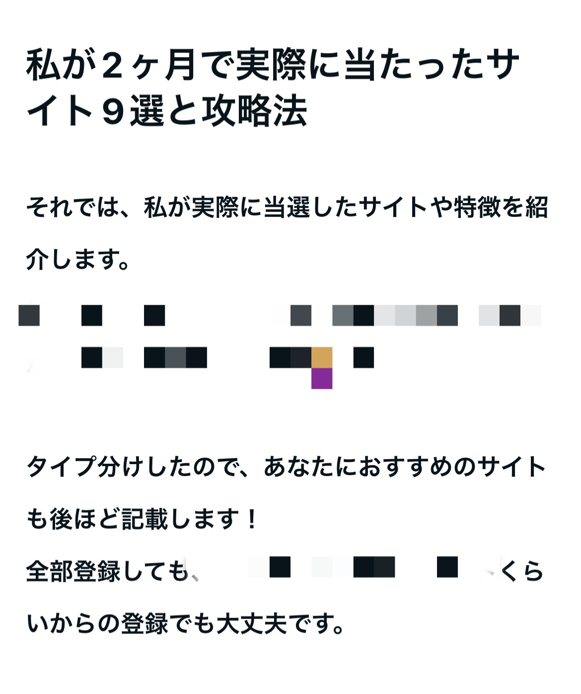 有料部分には、他にも秘訣8選や当選後のリスク回避など、他にも裏技を多数記載しております。
