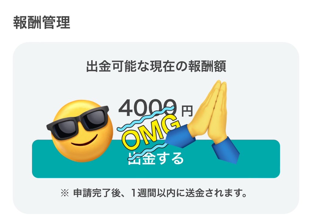 オンラインインタビューでも1週間後〜1ヶ月以内には報酬が反映されるので、なるべく早めに収益をあげたい方に非常におすすめです!