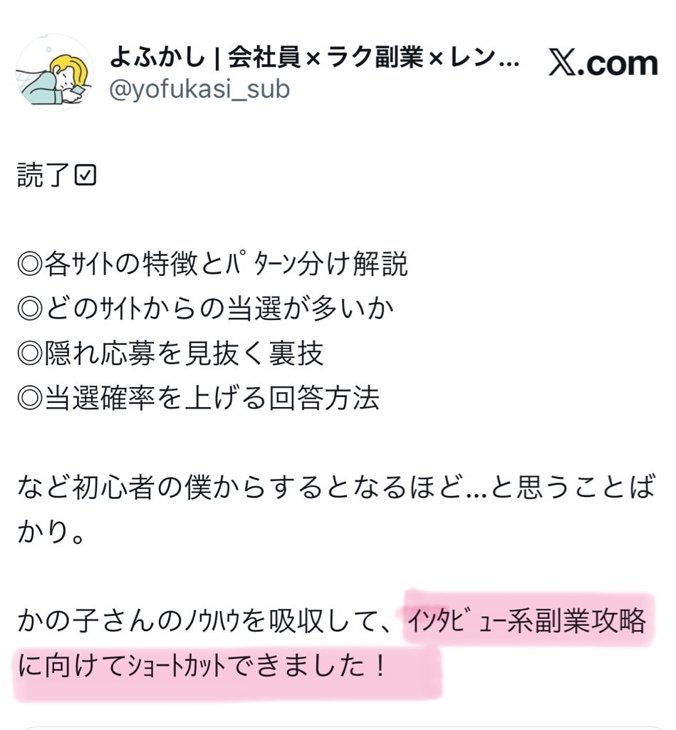 🔽かの子のX(旧Twittter)でも副業について発信しています。