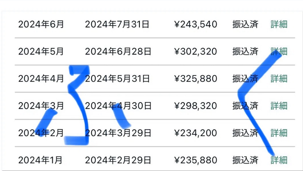 先ほどの月53万円の他にも穴場ジャンルを使い会社員とは別の収益を上げてきました。