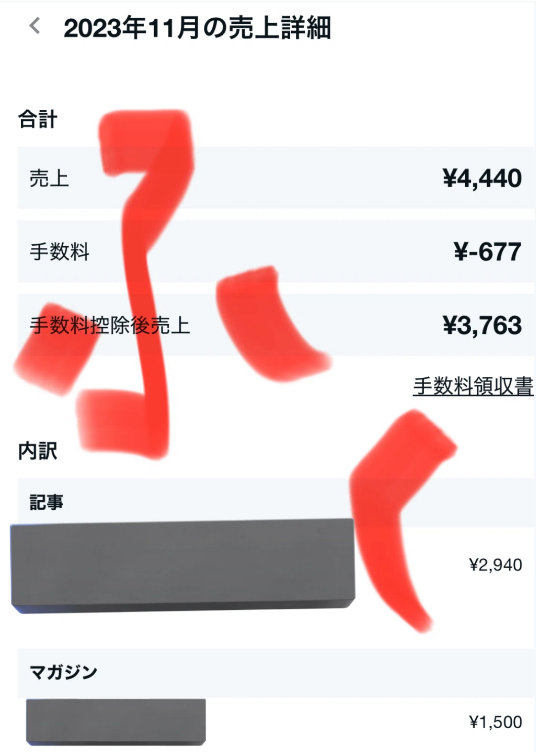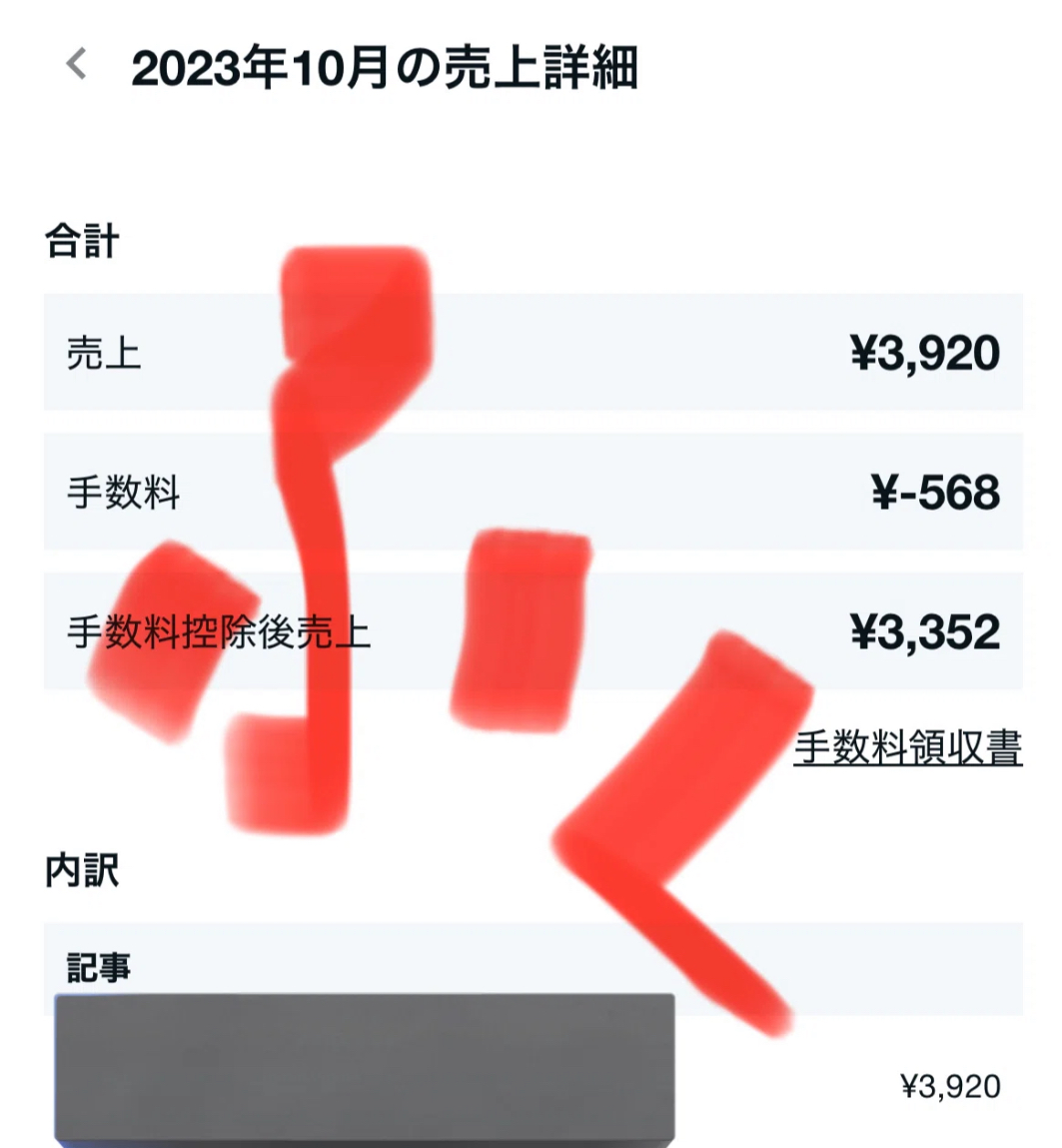 まず、冒頭の収益画像はnote売上の一部です。