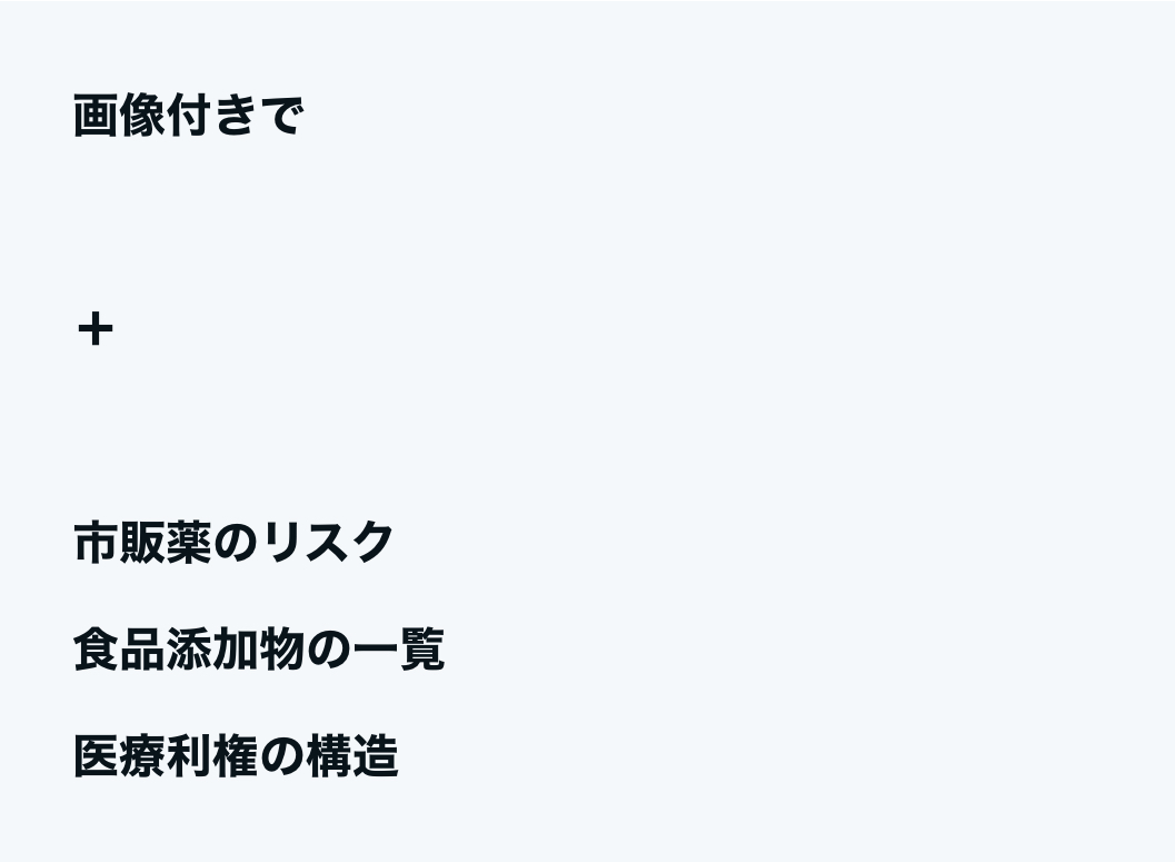 - (食・病気・薬・医療・社会の裏など)