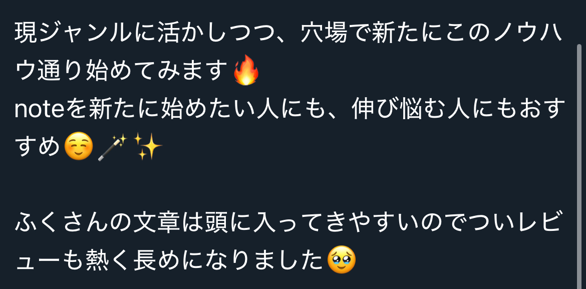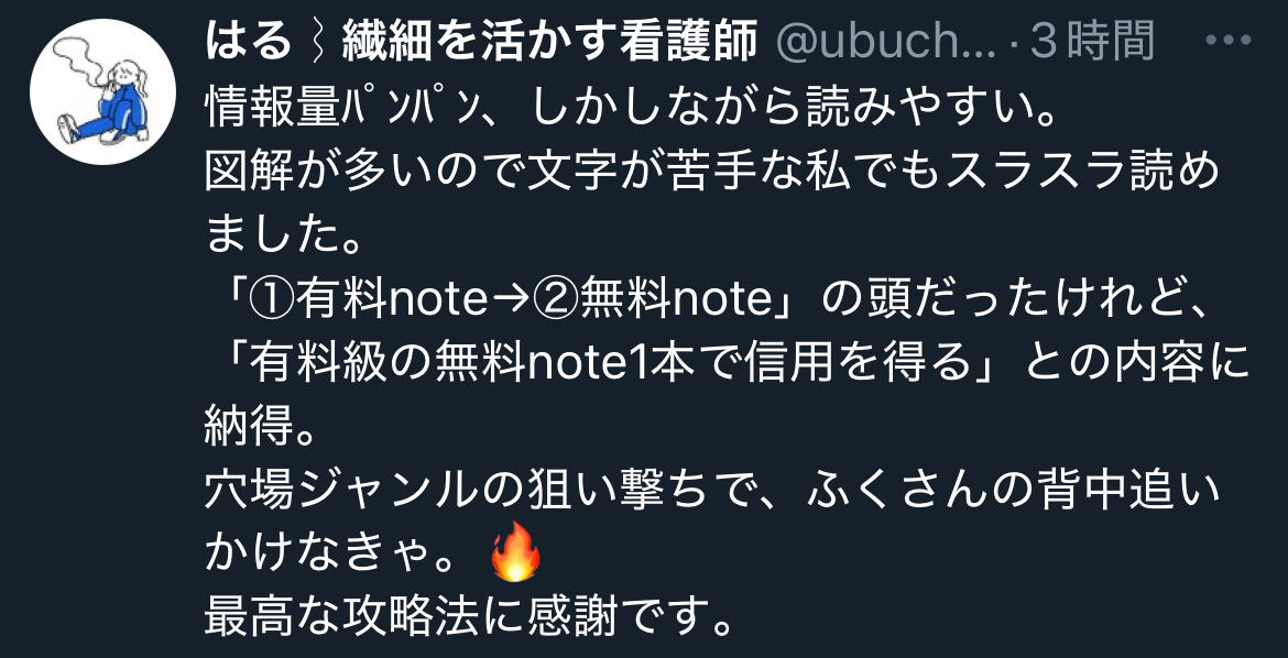 などの「救済+攻略」の切り口を持っていると、ファンの定着率が高く、そのままnote購入にも繋がりやすいです。