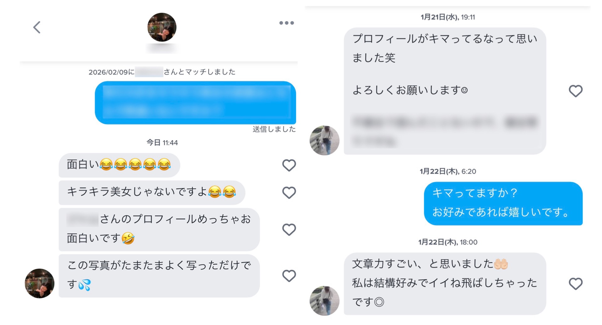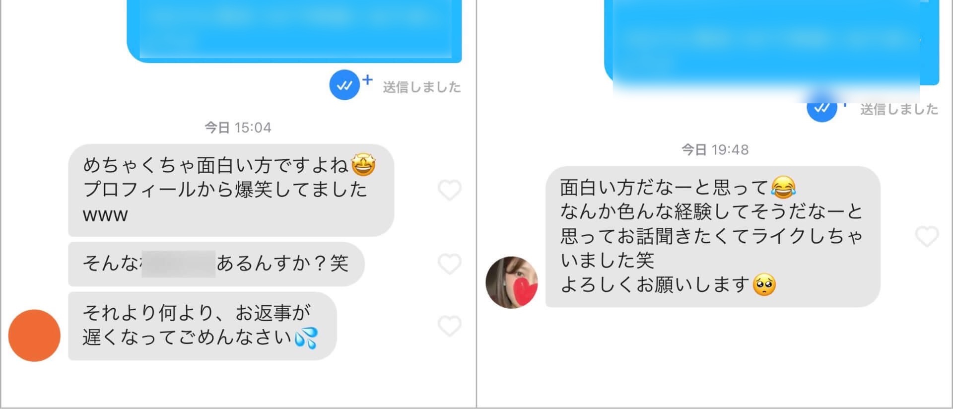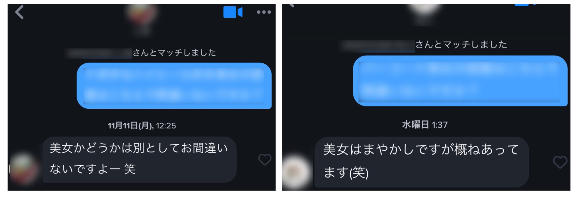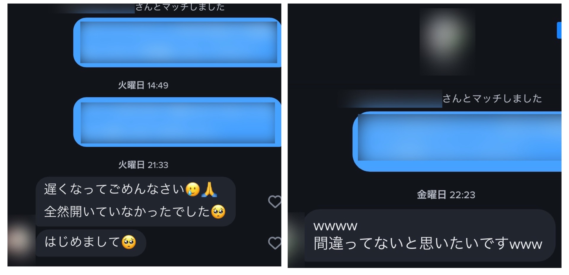 マッチ後に送る最初のメッセージも「初めまして」や「マッチありがとうございます」なんてありきたりなものではなく、ほんの少しのユーモアでこんなふうに返ってきます↓