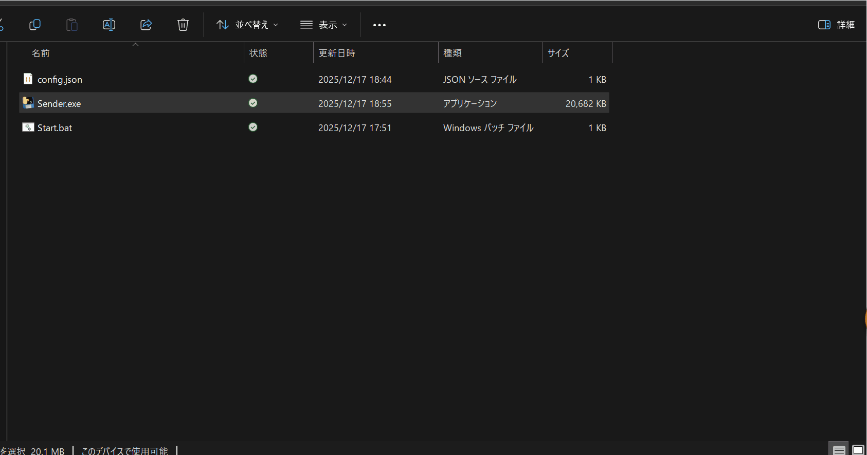 今回配布する『Sender.exe』は、面倒な設定をすべて排除しました。