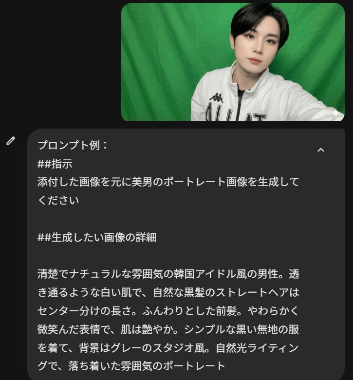 ※ここではみなさんが、生成した雰囲気の髪型や、背景の色を入力してください