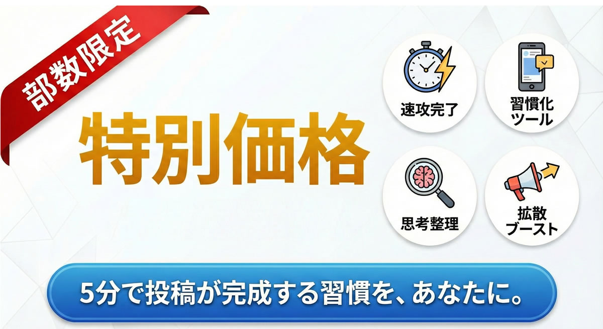 Threads連投を“5分で完成させる仕組み”がこの価格で手に入るのは、今だけです。