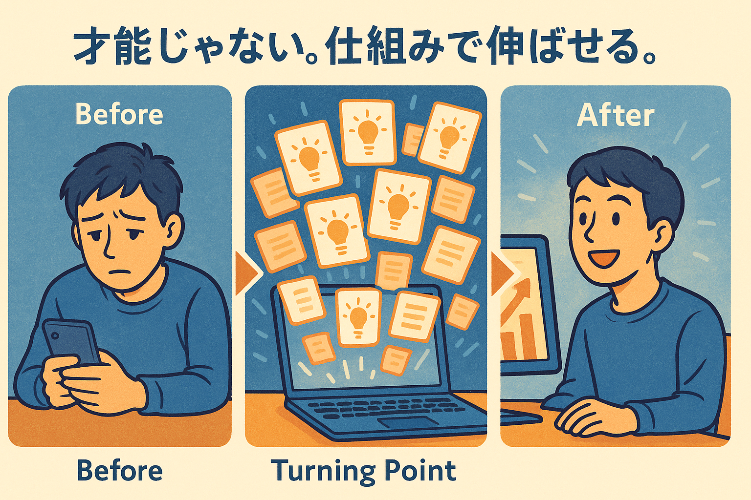 伸びる人と伸びない人の違いは、センスや運ではありません。違いを生むのは 「仕組み化された改善サイクルを持っているかどうか」 です。