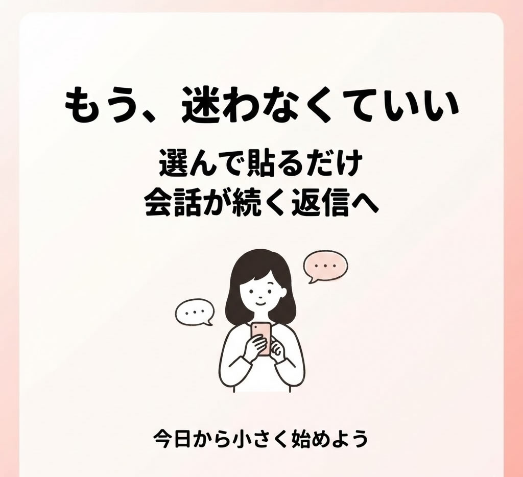ここまで読んで、少しでも自分のことだと感じたなら、たぶん合っています。返信が下書きで止まっていた時間を減らして、今日から貼れる状態を作る。その小さな一歩が、後から大きな差になります。