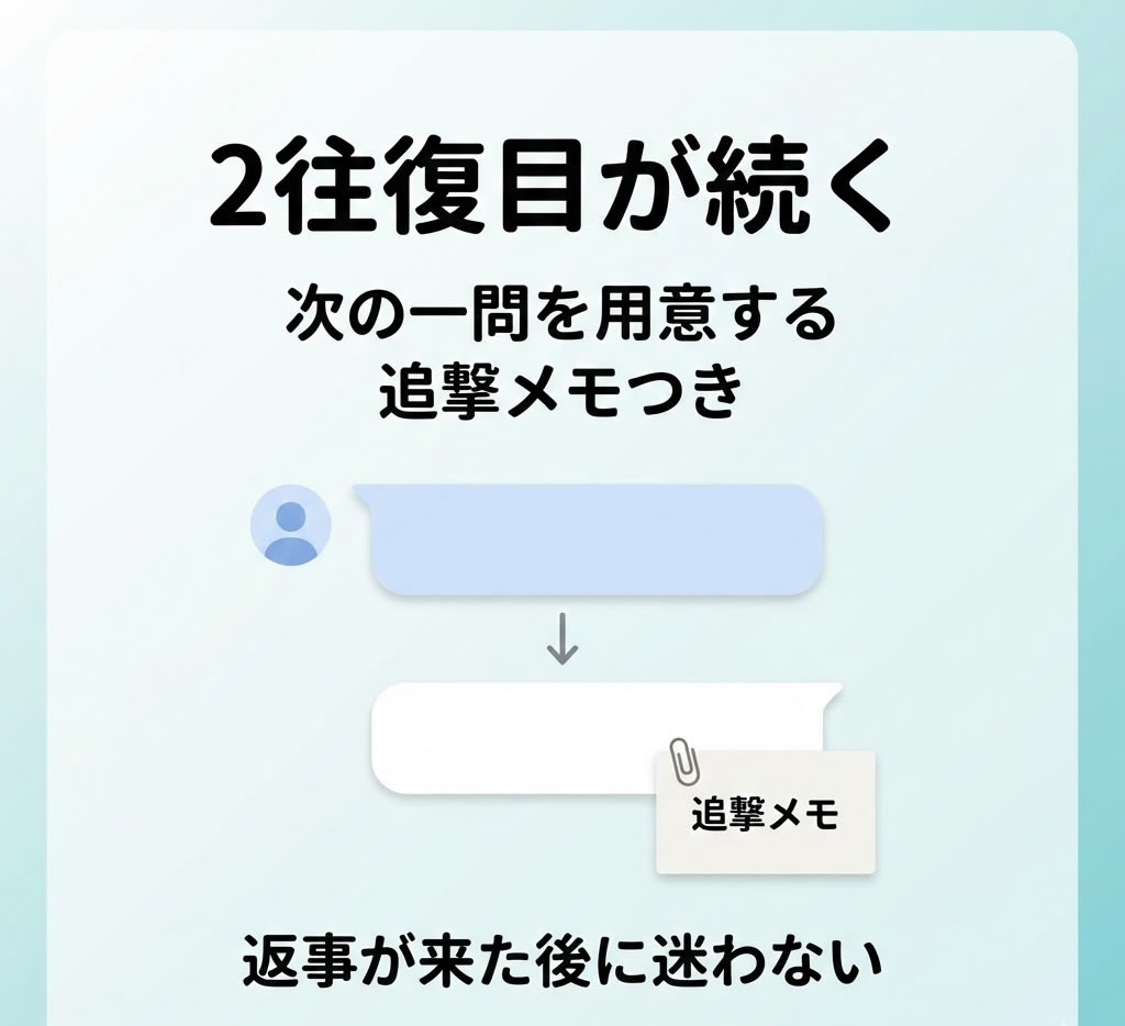 次のセクションでは、会話が返ってきた後に止まらないための追撃メモについて、2往復目の壁の越え方を具体的にお伝えします。