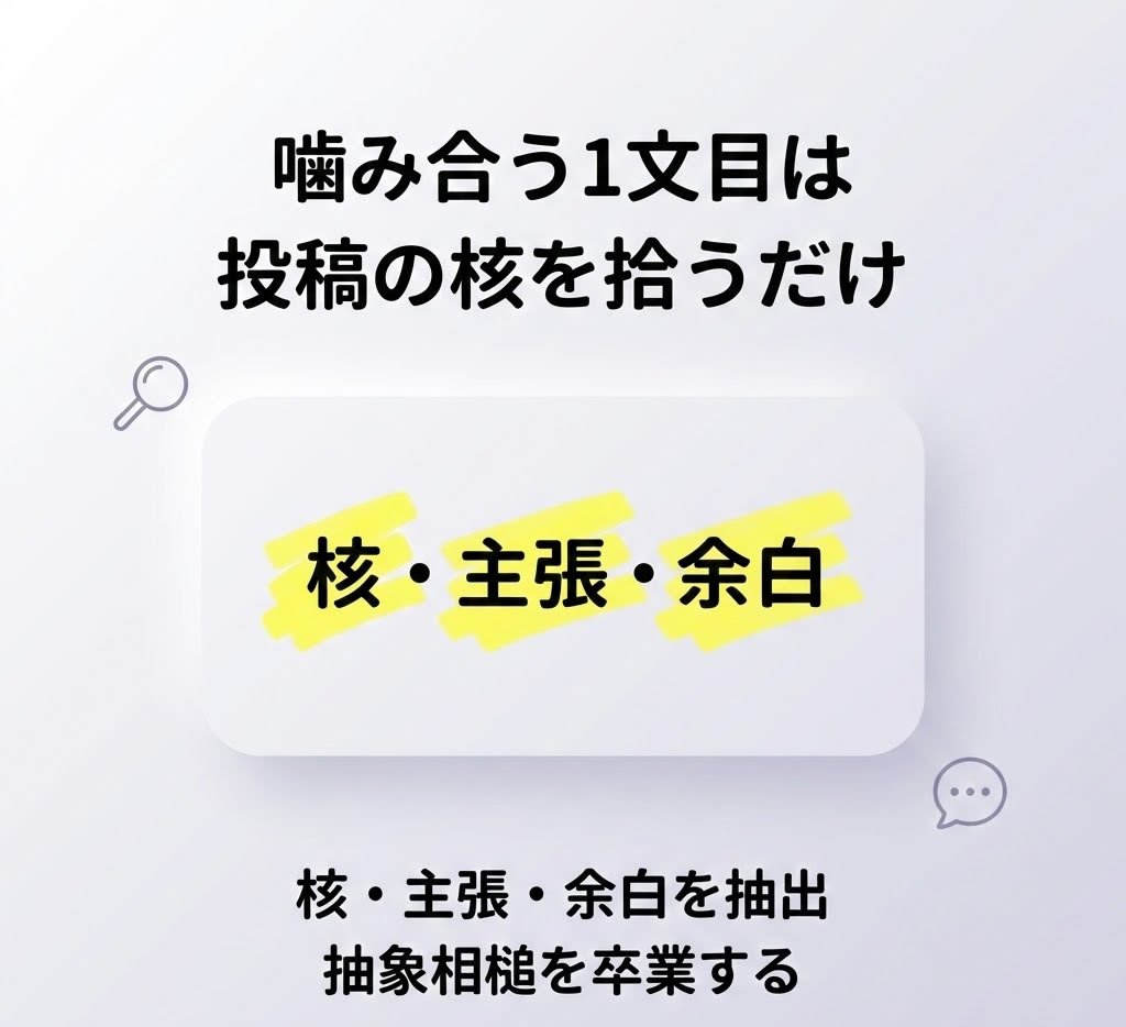 - 炎上・論争系の投稿でも、感情を煽る枝葉ではなく“中身”に寄せて安全に入れます。