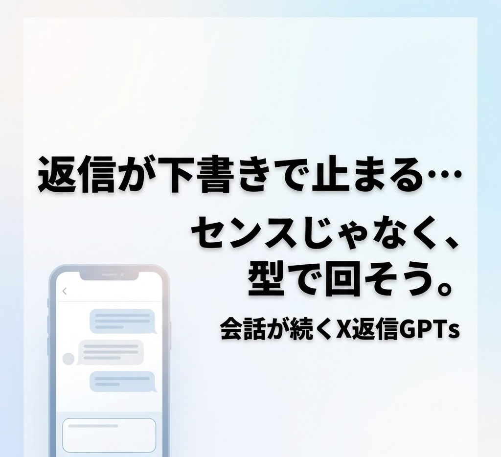 はい。むしろ、返信が苦手な人ほど相性がいいです。返信が止まる原因は、気の利いた文章が書けないことより、どの温度で返すか、何を狙うか、どこまで踏み込むかが毎回決まらないことにあります。このGPTsは最初に基準を固定し、投稿の核を拾い、3案を出して、返しやすい質問まで整えます。あなたは選んで貼るだけでいいので、センスや言語化の得意不得意に左右されにくいです。
