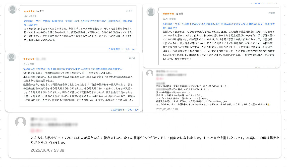 ココナラのにある評価は今回提供するものだけで鑑定した結果での評価になります。