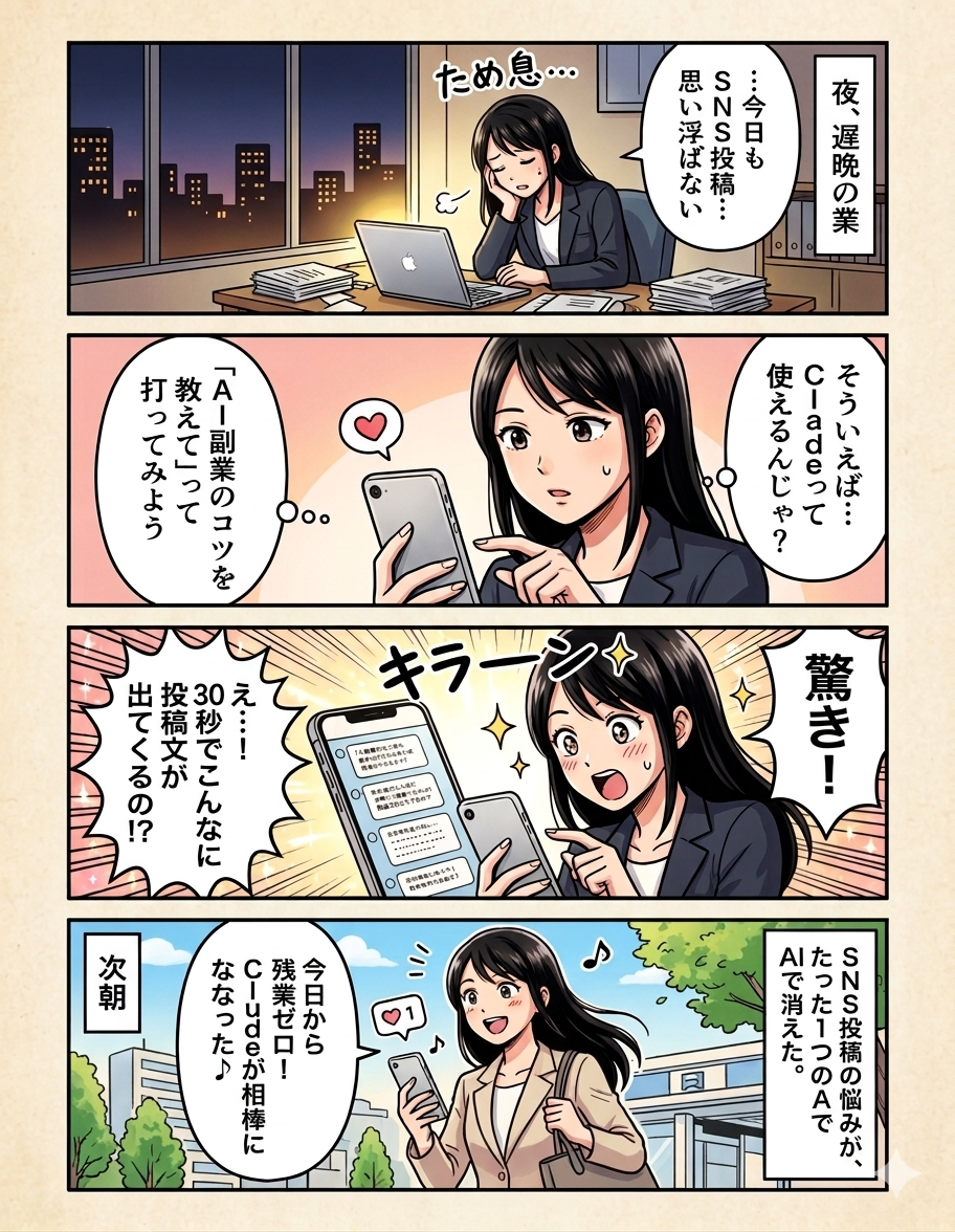 読み終えたときには、 「SNSは頑張るものではなく、仕組みで回すもの」 という認識に変わるはずです。