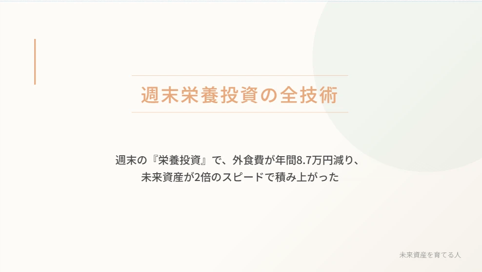 1.なぜ「週末の栄養投資」が未来資産を加速させるのか?