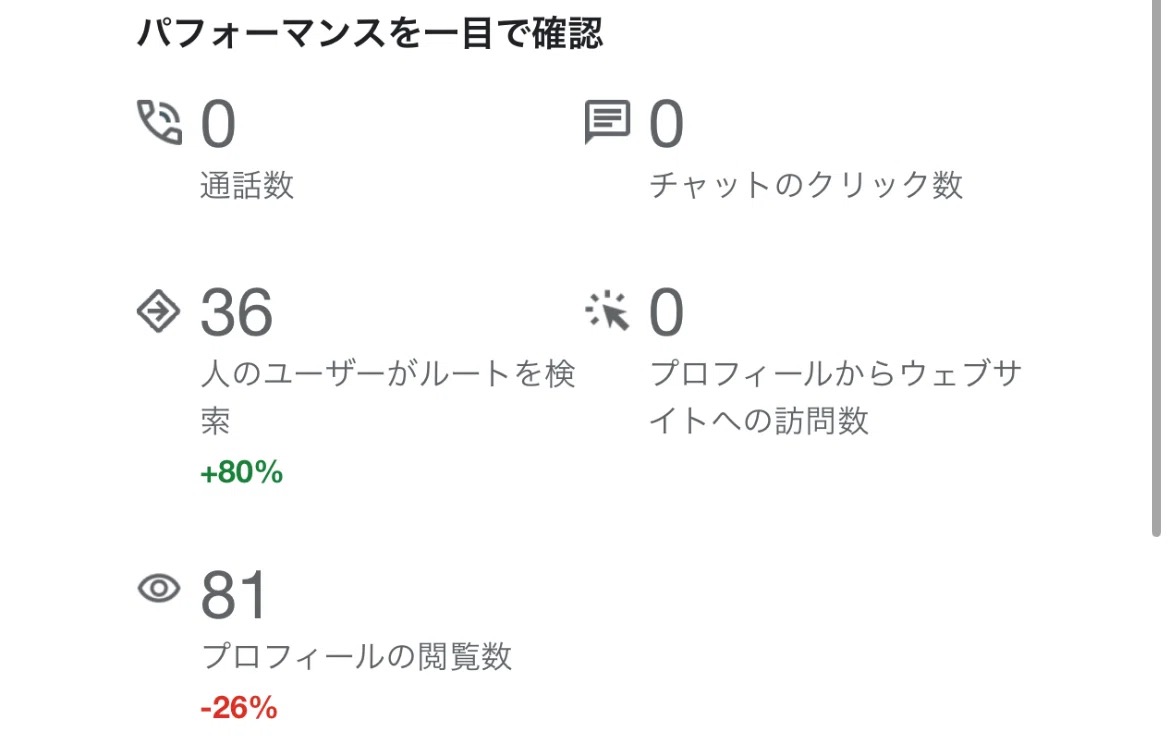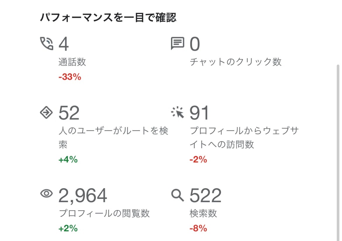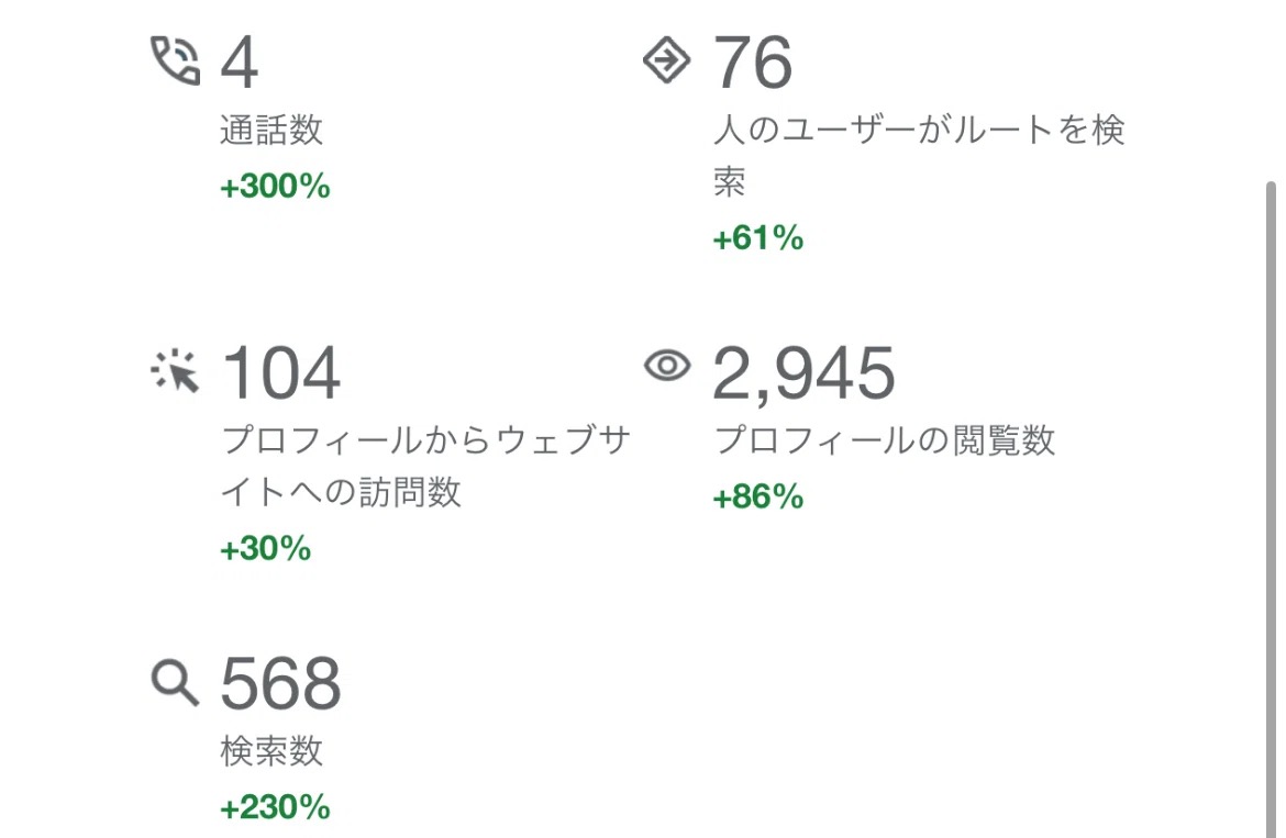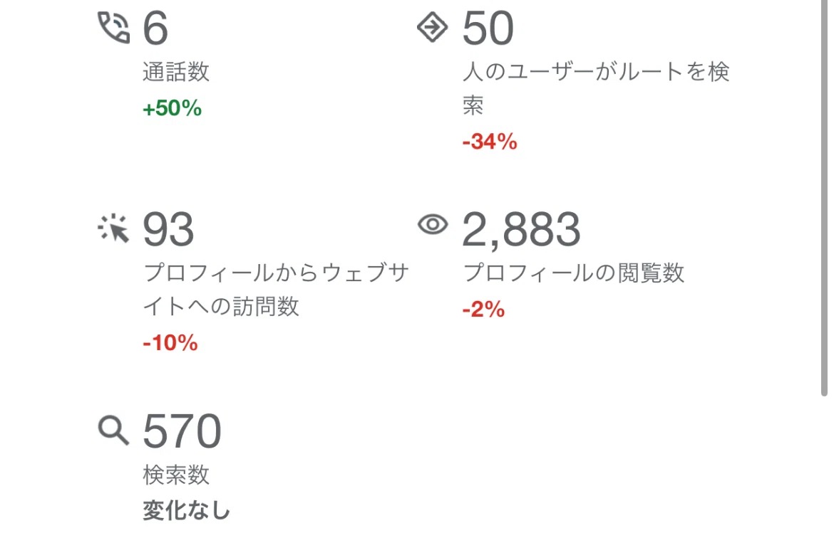 Googleマップ施策を実施する前のパフォーマンスです。こちらはGoogleマイビジネスを登録しておくと毎月メールで届くものになります。🔻ビフォー🔻