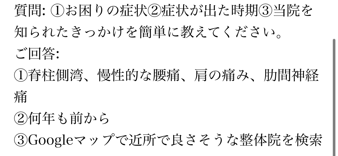 ここでご紹介するのは――「口コミ数ではなく、“症状”で検索する人を狙う」Googleマップ上で、たとえば「坐骨神経痛 整体 地域名」「腰痛 鍼灸 地域名」など、実際に“改善を求めている人”が検索するキーワードで、あなたの院を“広告枠の下・上位”に安定表示させる裏技です。