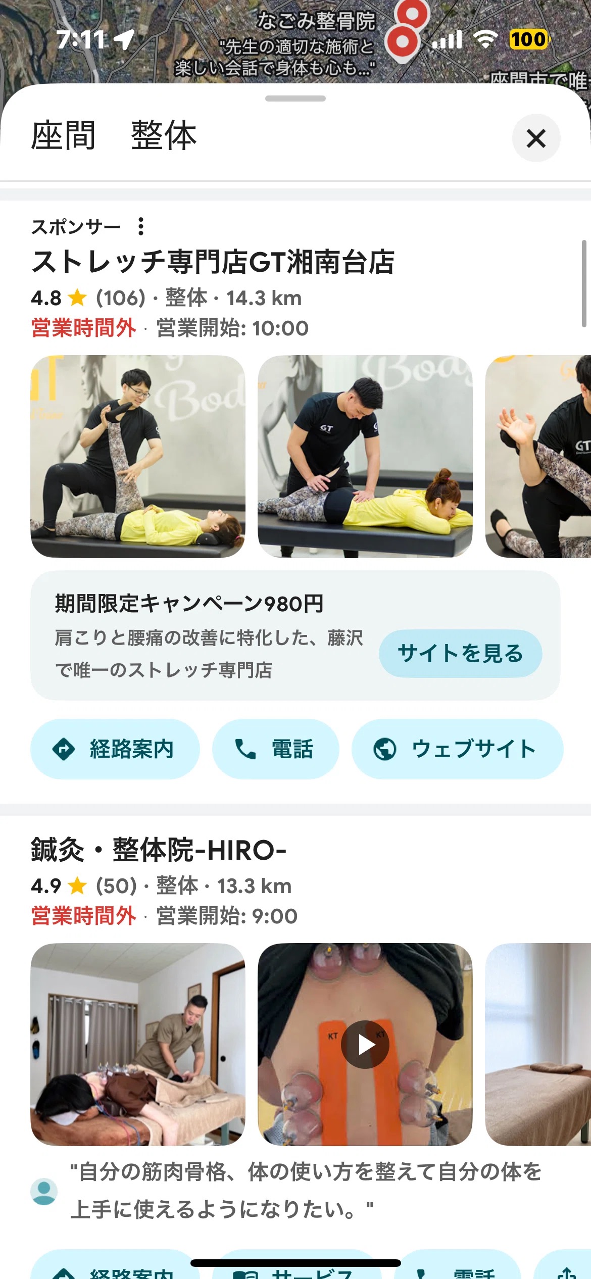 スポンサーと表記されている治療院があったとしてもそれは広告なので、完全無料で広告の一個下に常にいるわけです。たまに1-2個下になってたりすると、またとある手法を使いトップ層を取りに行きます。