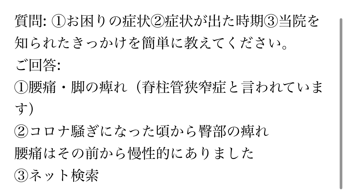 ・坐骨神経痛やヘルニアの方に来て欲しい